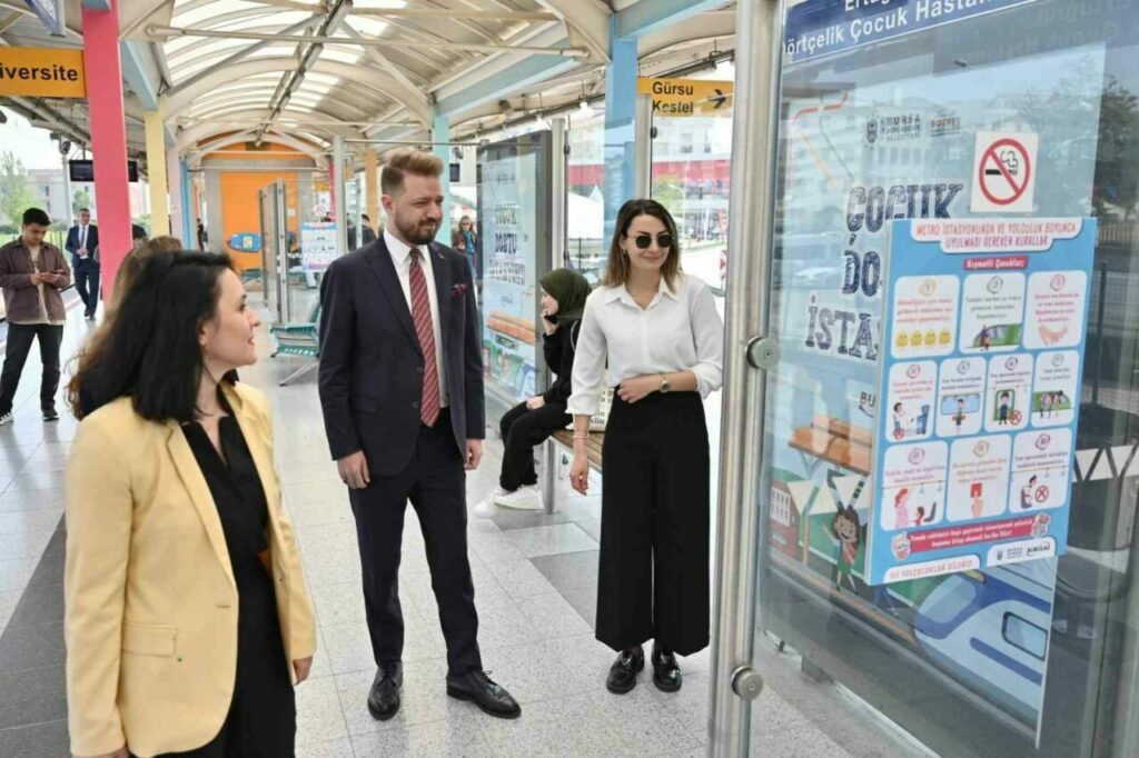 Bayraklar ve balonlarla süslenen ‘Çocuk Dostu Metro İstasyonu’nun açılış törenine, Bursa Büyükşehir Belediyesi Başkanvekili Yalçın Işıkyıldız, Büyükşehir Belediyesi Genel Sekreter Yardımcısı Mehmet Yıldız, BURULAŞ Genel Müdürü Fahrettin Beşli, belediye yöneticileri, ilçe belediyelerinin yöneticileri, muhtarlar, çocuklar ve aileleri katıldı.