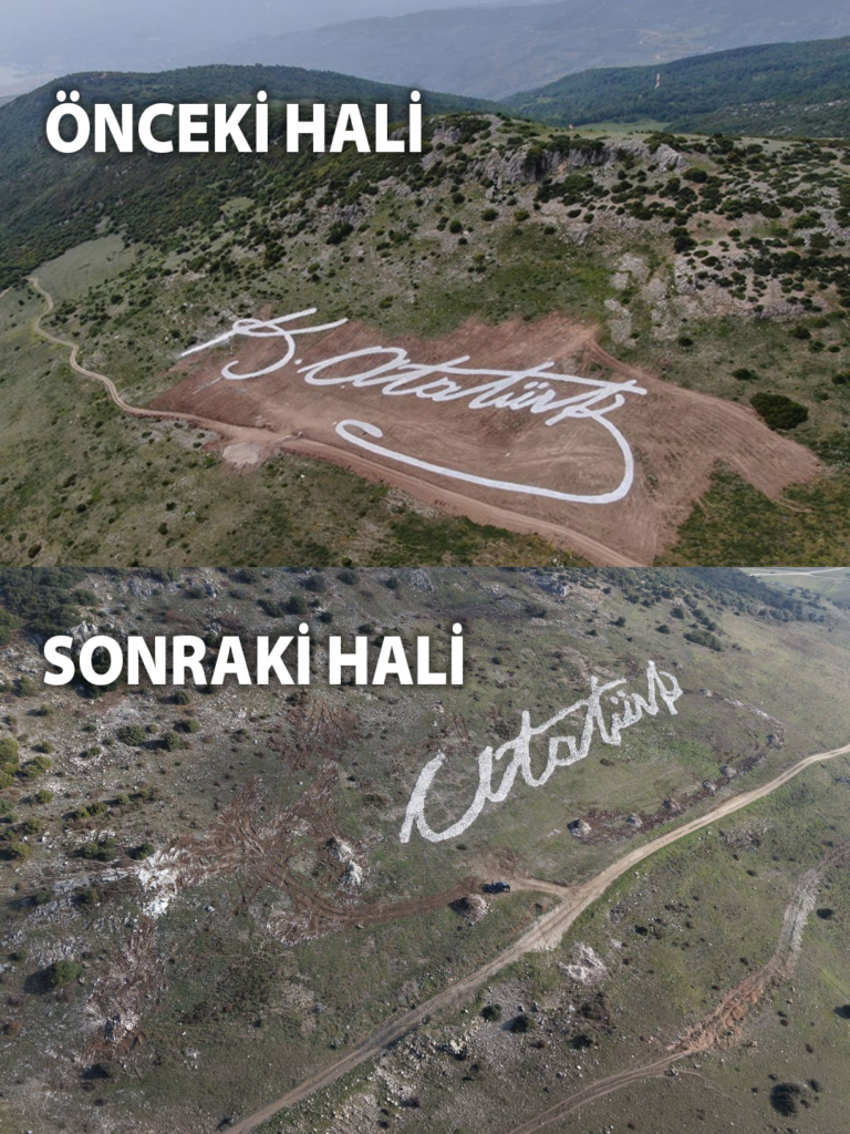 Gemlik’in en dikkat çeken simgelerinden biri olan, Şahintepe sırtlarında yer alan dev Atatürk imzası ile ilgili ortaya atılan iddialar ilçede büyük yankı uyandırdı. Yaklaşık 216 metre uzunluğa ve 70 metre genişliğe sahip olan dev imzanın tahrip edildiği yönündeki açıklamalar kamuoyunda tartışma başlattı.